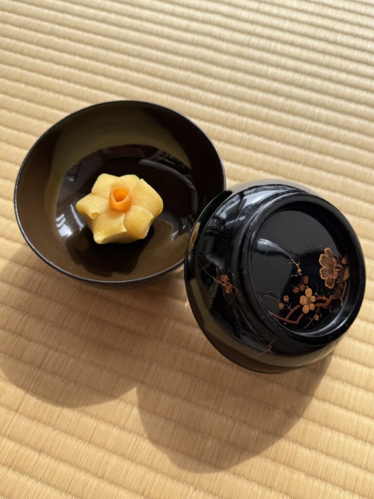 主菓子 水仙の花が梅の御椀に 鶴屋吉信製